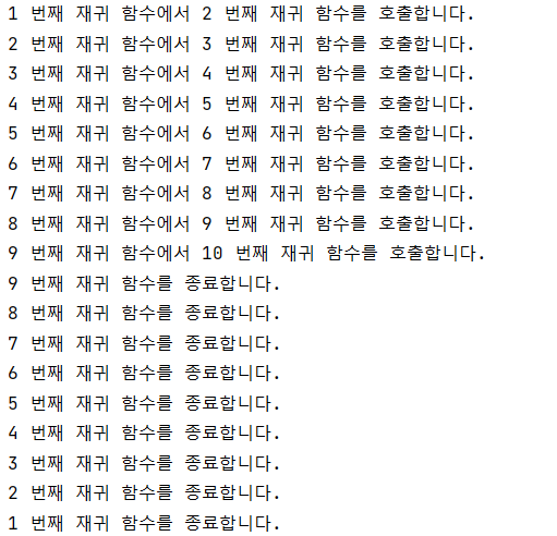 print(i, '번째 재귀 함수에서', i+1, '번째 재귀 함수를 호출합니다.')