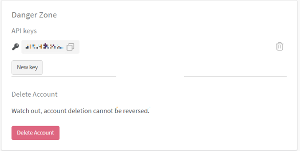 오른쪽상단 프로필 → Settings → Danger Zone 에 있는 API keys를 복사