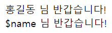 - 변수명 사용할 때는 {$변수명}으로 써주면 변수로 구분 가능
