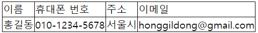 <tr><td>이름</td><td>휴대폰 번호</td><td>주소</td><td>이메일</tr>
